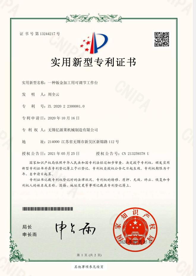 榮譽資質(zhì)無錫億源萊機械制造有限公司